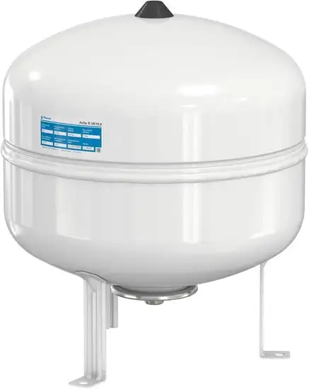 Фланко Airfix R 50 — это вертикальный расширительный бак объемом 50 литров, предназначенный для систем отопления и водоснабжения. Он подключается снизу с помощью резьбы 3/4" и не оснащён манометром. Бак обеспечивает безопасность системы при повышении давления благодаря максимальному рабочему давлению 10 бар и исходному давлению 4 бар. Изготовлен из стали с мембраной из EPDM, которая защищает систему от загрязнений и обеспечивает долговечность. Размеры бака — 620 мм в высоту и 390 мм в диаметр, весит около 11 кг. Такой бак прост в установке и помогает поддерживать стабильное давление в системе.