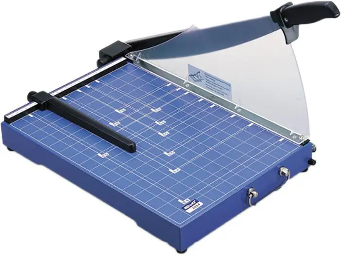 Сабельный резак KW-trio 13024 предназначен для точного резания формата В4 (250х353 мм) с длиной реза 392 мм. Он оснащен механическим приводом ножей и механическим прижимом, что обеспечивает стабильность и чистоту реза. Высота стопы резака составляет 2 мм, что удобно для обработки различных материалов. Глубина рабочего стола достигает 305 мм, позволяя работать с крупными заготовками. Особо стоит выделить надежную конструкцию и компактные размеры — 48х33.5х41.5 см при весе 4,2 кг. Резак не имеет программируемых функций и выдвижного упора, но его механическая схема гарантирует простоту и долговечность в использовании. Этот инструмент идеально подойдет для офисов и небольших мастерских, где важна точность и удобство работы. Надежность и легкость позволяют легко управляться с устройством даже новичкам.