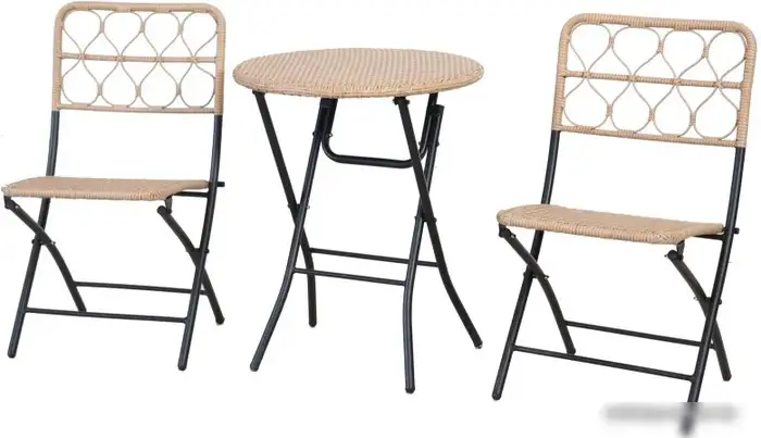 Набор садовой мебели Garden Story Арго SG-22012 включает круглый стол и два стула, идеально подходящие для отдыха на даче или в саду. Столешница выполнена из искусственного ротанга, что придает уютный вид и долговечность. Основание сделано из стали, обеспечивая устойчивость и прочность конструкции. Стулья покрыты искусственным ротангом, что облегчает уход и делает их долговечными. Благодаря складной конструкции, набор легко хранить и переносить. Размеры стола: диаметр 600 мм и высота 720 мм, стул — ширина 530 мм, глубина 470 мм, высота 840 мм. Вес набора составляет всего 10 кг, поэтому его удобно перемещать. Этот комплект не занимает много места, а материалы обеспечивают надежную эксплуатацию на улице. Он отлично подойдет для уютных посиделок и небольших компаний. Кроме того, он выполнен в нейтральных цветах бежевого и черного, что легко сочетается с любым интерьером участка.