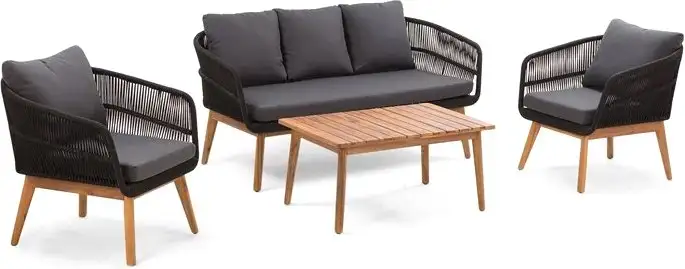 Набор садовой мебели Garden Story Камелия GS002 включает удобный диван, два кресла и столик, что позволяет организовать комфортное место для отдыха. Все элементы выполнены из прочных материалов: основание из стали, а столешница из дерева, что гарантирует долговечность и стабильность. Стол имеет прямоугольную форму, длиной 900 мм и шириной 600 мм, создавая достаточно пространства для еды или общения. В комплект входят мягкие подушки, которые делают сиденье более приятным и комфортным. Такой набор не складывается и не раздвигается, он предназначен для постоянного использования на улице. Эргономичные размеры кресел — 730 мм в ширину и 750 мм в глубину — обеспечивают хорошую посадку. Все элементы имеют выдержанный дизайн в серых, черных и коричневых цветах, легко впишутся в любой сад или террасу. Этот набор обладает стабильной конструкцией и прост в использовании, что делает его отличным выбором для отдыха на природе.