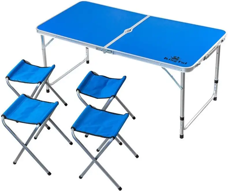 Стол KingTul KT-09517M (56490) сочетает в себе удобство и практичность. Он выполнен из МДФ с металлическим основанием из алюминия и имеет прямоугольную форму. Благодаря складной конструкции, его легко хранить и переносить, так как он занимает мало места. В комплект входит четыре стула из ткани, которые удобно использовать для семейных обедов или дружеских встреч. Стол можно регулировать по высоте в диапазоне 540–700 мм, что делает его удобным для любых условий. В комплекте есть зонт, создающий комфорт в солнечную погоду. Его размеры позволяют разместиться нескольким людям, а компактная упаковка в виде чемодана облегчает транспортировку. Цветовая палитра — серебристый и синий — отлично впишется в современный интерьер. Этот набор подойдет для дачи, пикника или использования дома.