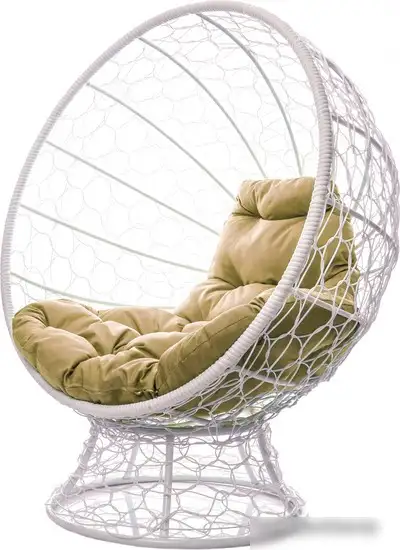 Кресло M-Group Кокос на подставке 11590101 (белый ротанг/бежевая подушка)