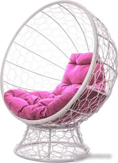 Кресло M-Group Кокос на подставке 11590108 (белый ротанг/розовая подушка)