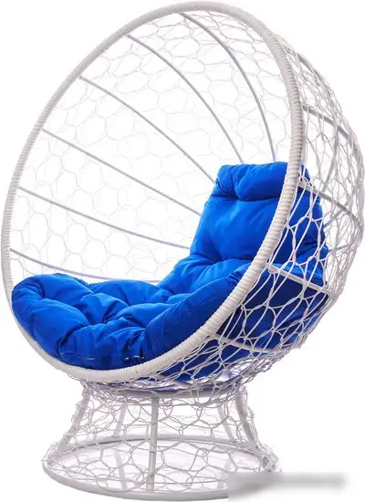 Кресло M-Group Кокос на подставке 11590110 (белый ротанг/синяя подушка)