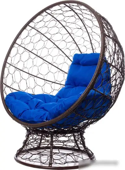Кресло M-Group Кокос на подставке 11590210 (коричневый ротанг/синяя подушка)
