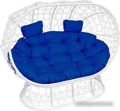 Садовый диван M-Group Лежебока 11190110 (на подставке с белым ротангом/синяя подушка)