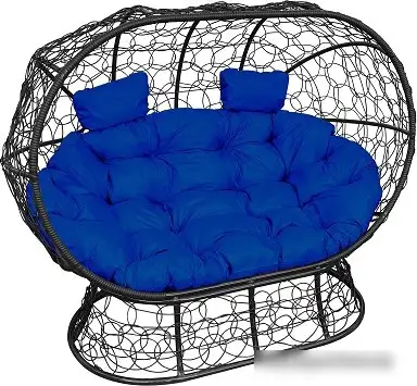 Садовый диван M-Group Лежебока 11190410 (на подставке с черным ротангом/синяя подушка)