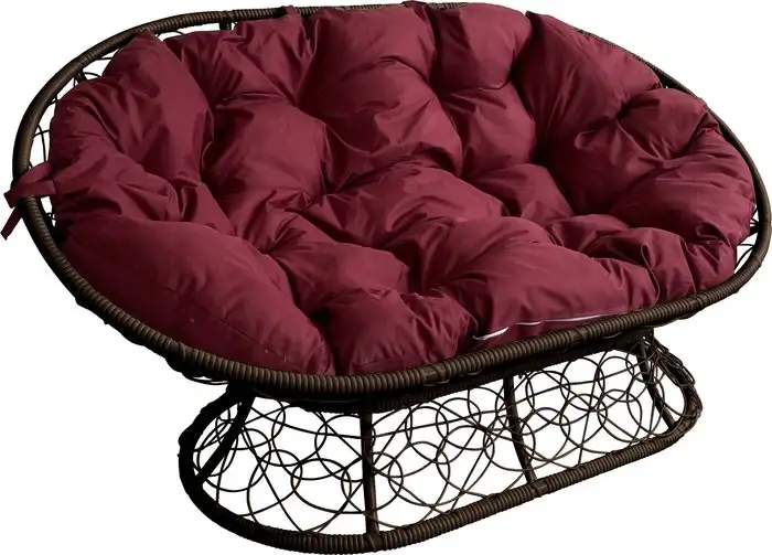 Садовый диван M-Group Мамасан 12110202 (коричневый ротанг/бордовая подушка)