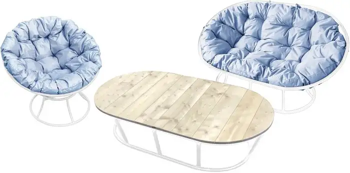 Набор садовой мебели M-Group Мамасан, Папасан и стол 12130109 (белый/серая подушка)