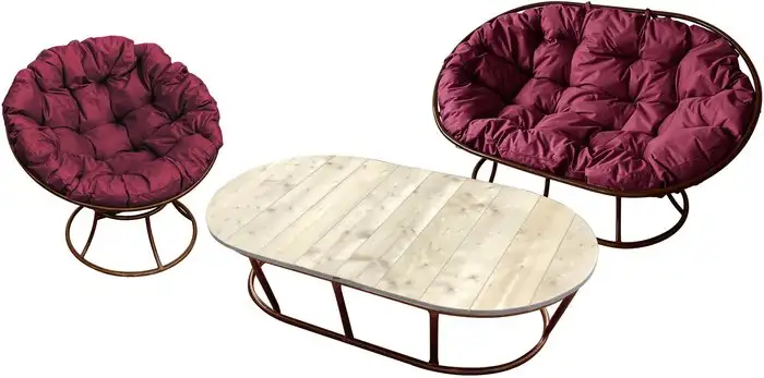 Набор садовой мебели M-Group Мамасан, Папасан и стол 12130202 (коричневый/бордовая подушка)