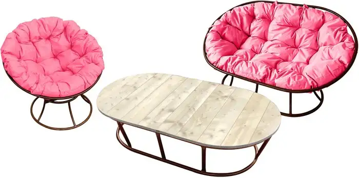 Набор садовой мебели M-Group Мамасан, Папасан и стол 12130208 (коричневый/розовая подушка)