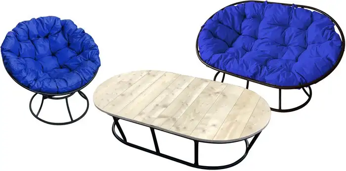 Набор садовой мебели M-Group Мамасан, Папасан и стол 12130410 (черный/синяя подушка)