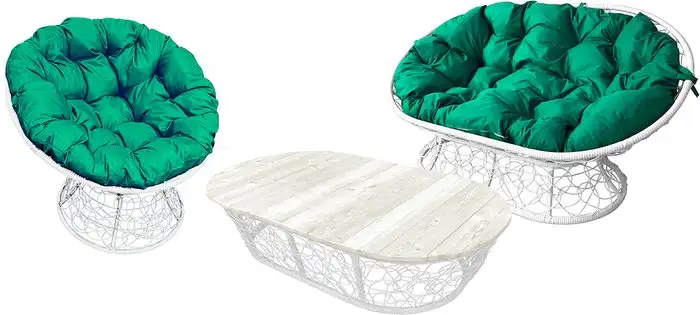 Набор садовой мебели M-Group Мамасан, Папасан и стол 12140104 (белый ротанг/зеленая подушка)