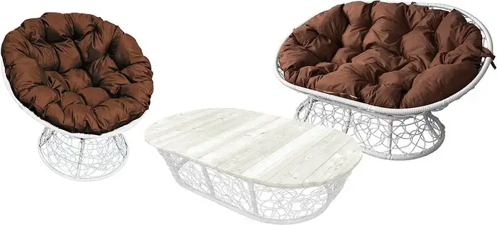 Набор садовой мебели M-Group Мамасан, Папасан и стол 12140105 (белый ротанг/коричневая подушка)