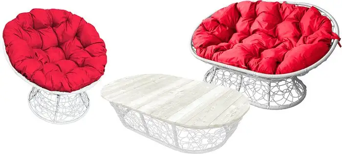 Набор садовой мебели M-Group Мамасан, Папасан и стол 12140106 (белый ротанг/красная подушка)
