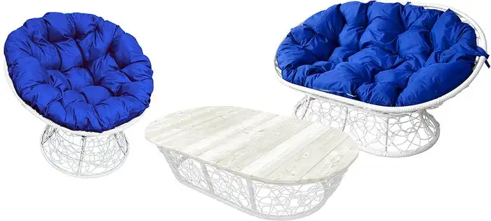 Набор садовой мебели M-Group Мамасан, Папасан и стол 12140110 (белый ротанг/синяя подушка)
