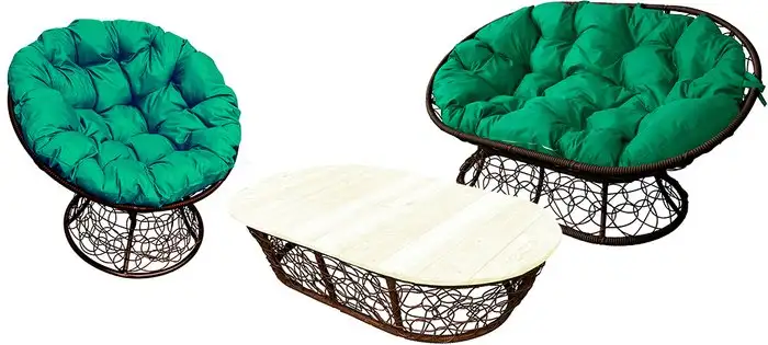Набор садовой мебели M-Group Мамасан, Папасан и стол 12140204 (коричневый ротанг/зеленая подушка)