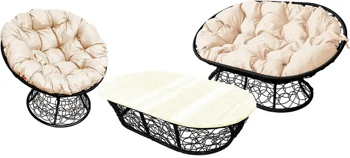 Набор садовой мебели M-Group Мамасан, Папасан и стол 12140401 (черный ротанг/бежевая подушка)