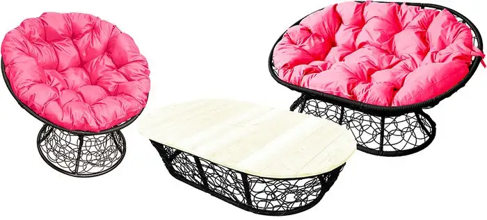 Набор садовой мебели M-Group Мамасан, Папасан и стол 12140408 (черный ротанг/розовая подушка)