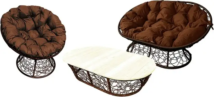 Набор садовой мебели M-Group Мамасан, Папасан, стол 12140205 (коричневый ротанг/коричневая подушка)