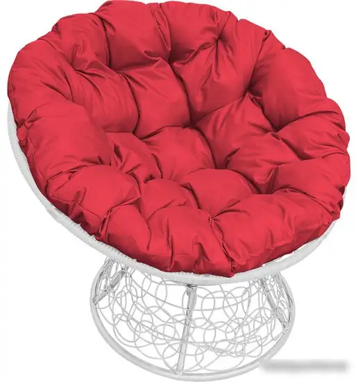 Кресло M-Group Папасан 12020106 (белый ротанг/красная подушка)