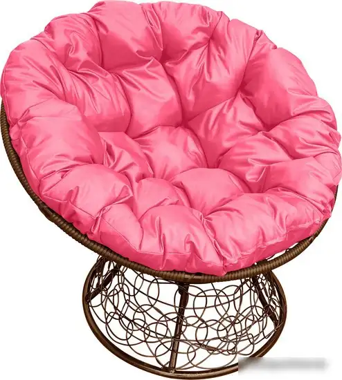 Кресло M-Group Папасан 12020208 (коричневый ротанг/розовая подушка)