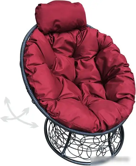 Кресло M-Group Папасан пружинка мини 12090402 (черный ротанг/бордовая подушка)