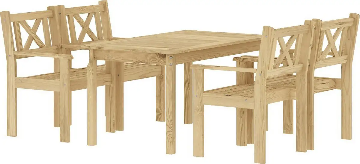 стол + 4 стула, стол: 1334×770×750 мм, основание - дерево, столешница - дерево, сиденье: 640×590 мм, материал: дерево