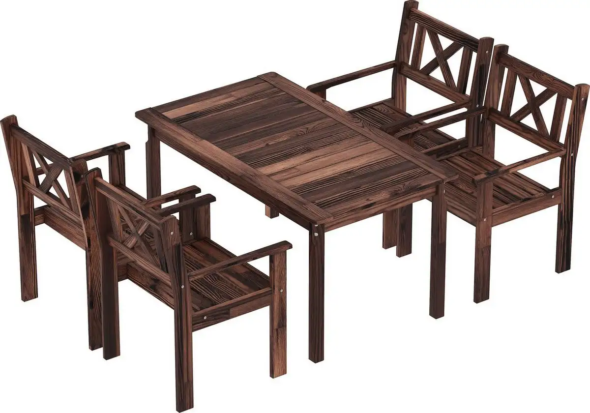 стол + 4 стула, стол: 1334×770×750 мм, основание - дерево, столешница - дерево, сиденье: 640×590 мм, материал: дерево