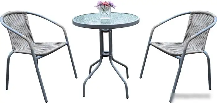 Обеденная группа Sundays LUC-TA21 включает стол и два кресла, выполненные в сером цвете. Стол имеет круглую форму, его столешница сделана из стекла, а основание — из стали, что обеспечивает надежность и современный вид. Стол не складывается и не раздвигается, он держит достаточно места для комфортных обедов. Кресла изготовлены из искусственного ротанга, они удобные и долговечные. В комплект не входят подушки и зонт. Эта мебель подходит для уютных семейных обедов или встреч с друзьями на открытом воздухе. Простая конструкция легко подходит к разным стилям интерьера и экстерьера. Благодаря прочным материалам, мебель долго сохранит привлекательный вид. Массивные материалы обеспечивают устойчивость и безопасную эксплуатацию.