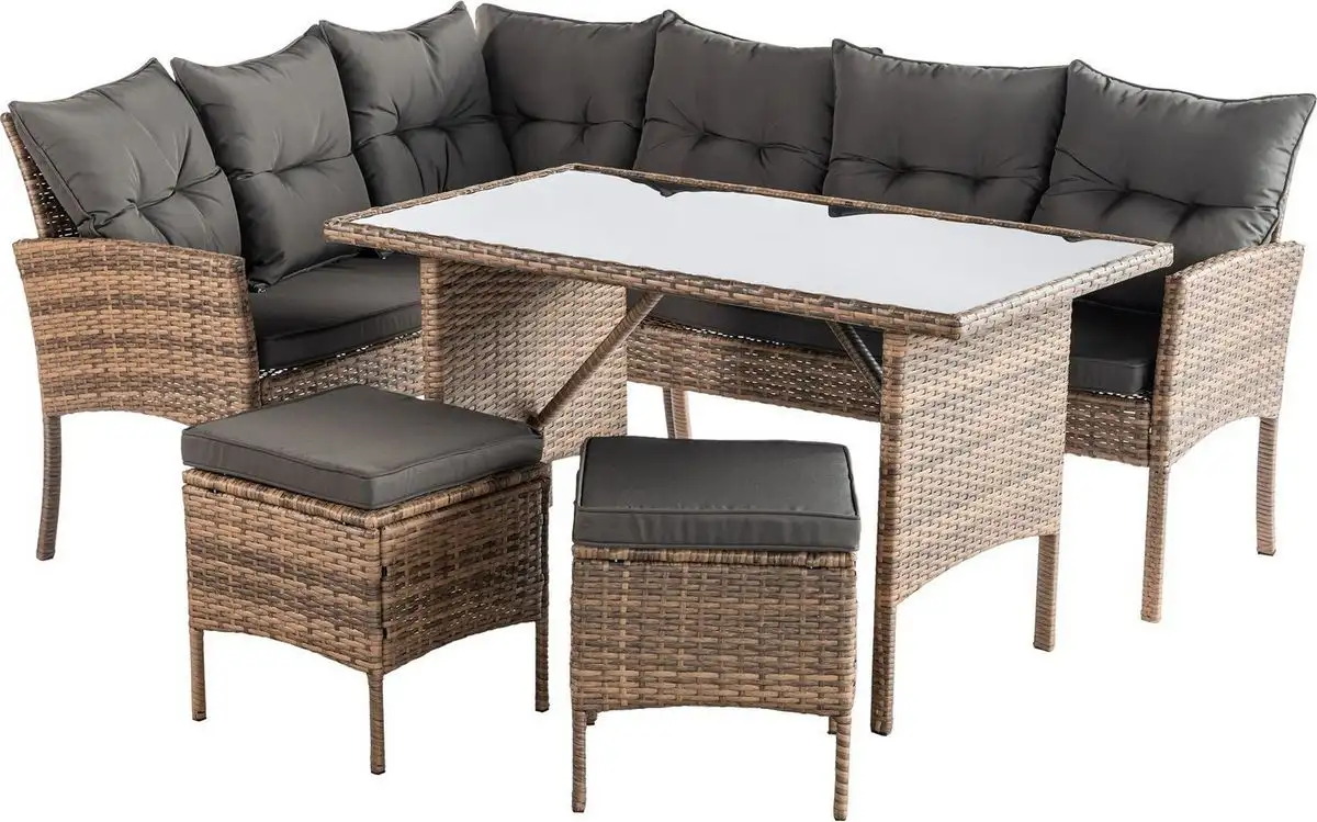 - Долговечный искусственный ротанг — устойчив к погодным условиям, не выцветает.
