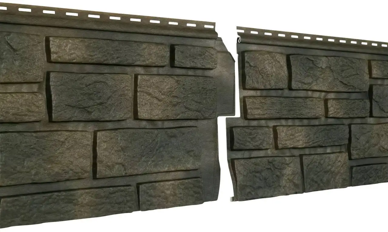 Ю-пласт Стоун хаус S-Lock, ПВХ, цвет таёжный, рельефная поверхность, влагостойкий, длина 1950 мм, ширина 292 мм, толщина 1.1 мм, полезная площадь 0.57 м², предназначен для облицовки стен, фасадов, фундамента, цоколя, фронтонов. Подходит для дома, дачи, бани, гаража, балкона.