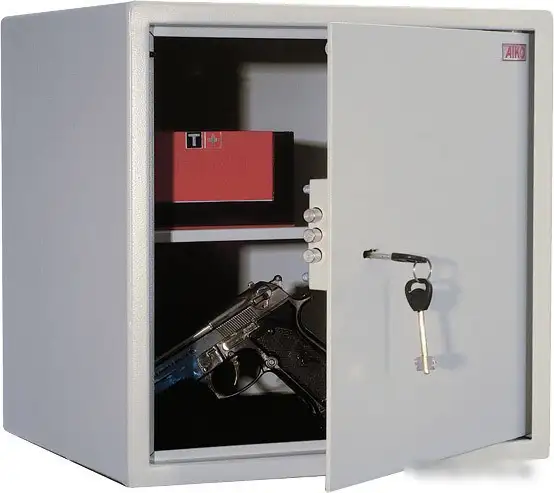 Мебельный сейф AIKO T-40 сделан из прочной стали и предназначен для безопасного хранения ценностей. Он крепится к стене или полу, что увеличивает безопасность. Дверь толщиной 3 мм обеспечивает хорошую защиту от взлома, а стенки толщиной 1,5 мм создают надежность. Внутри есть съемная полка, которая помогает организовать пространство. Замок ключевой тип защиты предотвращает несанкционированный доступ. Размеры сейфа — 400х400х370 мм, он легко помещается в комнату. Вес сейфа 19 кг, он устойчив и трудно перемещается. Конструкция взломостойкая, что повышает уровень безопасности. Нет трейзера, что делает его простым и надежным в использовании. Такой сейф отлично подходит для хранения документов, денег и мелких ценных вещей.
