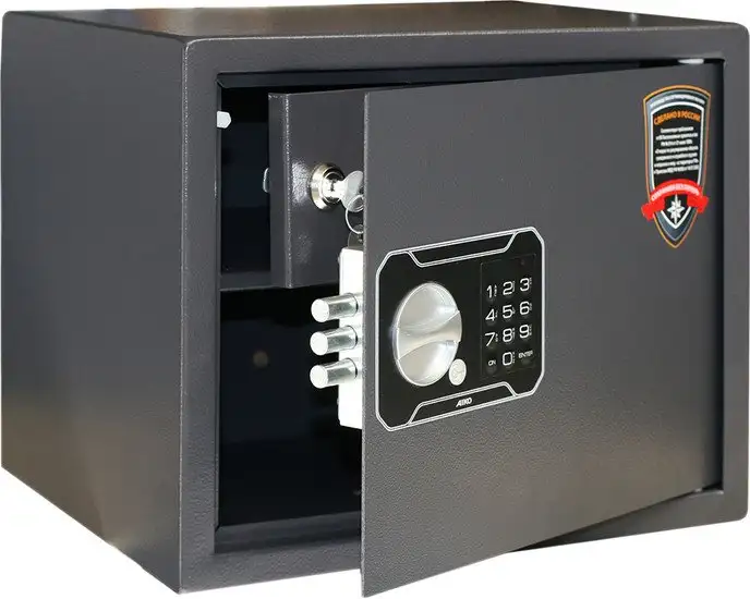 - Прочная сталь с толстой дверью — обеспечивает высокую безопасность и защиту от взлома.