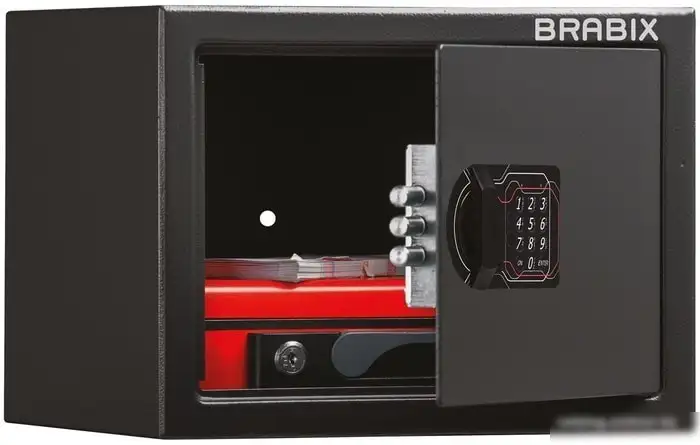 Мебельный сейф Brabix SF-230EL предназначен для безопасного хранения ценных вещей в доме или офисе. Он выполнен из прочной стали черного цвета и обладает взломостойкой конструкцией. В сейфе есть электронный замок, который легко управляется и обеспечивает дополнительную безопасность. Размеры сейфа позволяют удобно разместить его на стене, а объем 14,5 литров подходит для хранения документов и небольших предметов. Толщина двери составляет 2,8 мм, а стенки — 1,2 мм, что повышает защиту. Этот сейф весит всего 5,5 кг, его легко закрепить в нужном месте.