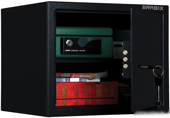Мебельный сейф Brabix SF-280KL предназначен для безопасного хранения ценностей. Он выполнен из прочной стали и имеет взломостойкую конструкцию, что обеспечивает высокий уровень защиты. Объем сейфа составляет 24,7 литра, внутри есть одна полка для удобства организации вещей. Замок ключевой делает открытие простым и надежным. Размеры сейфа: ширина 350 мм, высота 280 мм и глубина 300 мм, а его вес – 8,3 кг. Цвет сейфа — черный, он легко устанавливается на стену для дополнительной надежности.