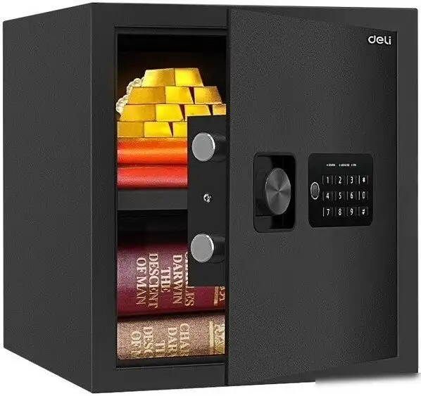 Мебельный сейф Deli Tarzan ET533 предназначен для надежного хранения ценностей и документов. Он выполнен из прочной стали и имеет черный цвет, что делает его стильным и долговечным. Внутри есть одна полка, которая помогает организовать пространство. Открывать сейф можно с помощью электронного ключевого замка, обеспечивающего быстрый доступ. Размеры 330 мм в ширину и глубину, а высота — 360 мм, позволяют разместить его в любой комнате. Вес сейфа составляет 11,9 кг, что делает его устойчивым и безопасным. Он не интегрируется в "умный дом", но обладает современными функциями безопасности. Простое управление и надежность делают его хорошим выбором для дома или офиса. Этот сейф сочетает стиль и функциональность, обеспечивая защиту ваших ценностей.
