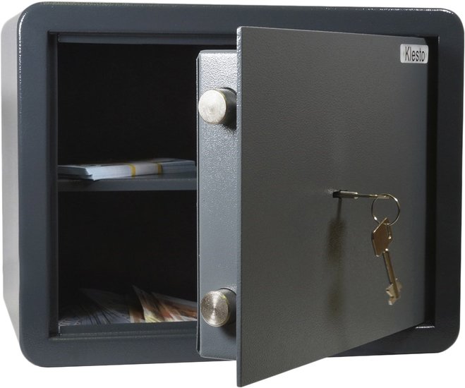 Офисный сейф Klesto RS30K выполнен из прочной стали, что обеспечивает надежную защиту ваших ценных вещей. Он имеет замок с ключом, его легко закрывать и открывать при необходимости. Размеры сейфа — 38 см в ширину, 30 см в высоту и 30 см в глубину, он не занимает много места и легко поместится в офисе или дома. Толщина двери составляет 4 мм, а стенок — 1,8 мм, что делает его очень прочным. Внутри есть полка, которая поможет удобно организовать ваши вещи. Вес сейфа — 14 кг, его сложно переместить или вскрыть злоумышленникам. Он легко крепится к стене или полу, обеспечивая дополнительную безопасность.