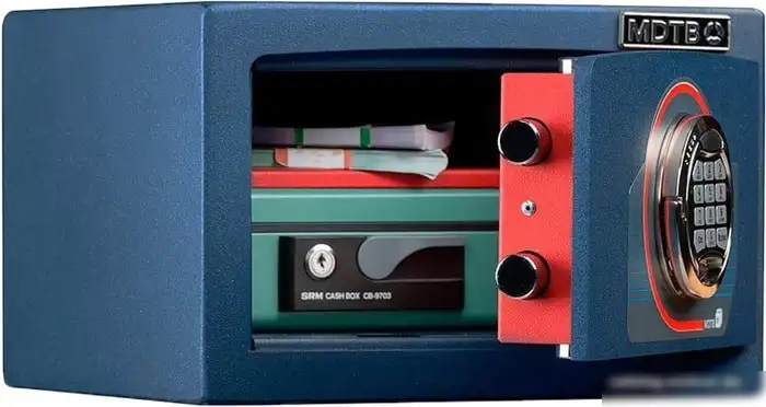 Офисный сейф MDTB EK-22.E предназначен для хранения важных документов и ценностей. Он выполнен из прочной стали и имеет взломостойкую конструкцию, которая защищает содержимое от несанкционированного доступа. Вместительность 11 литров позволяет удобно разместить документы, деньги и мелкие ценности. Электронный замок обеспечивает быстрое и безопасное открытие, а также упрощает управление доступом. Сейф крепится к стене, что делает его более устойчивым и безопасным. Его синий цвет (RAL 5001) легко вписывается в интерьер офиса. Внутри есть одна полка для более организованного хранения. Компактные размеры позволяют установить его даже в небольших помещениях. Сейф весит 41 кг и рассчитан на использование в офисах и кабинетах.