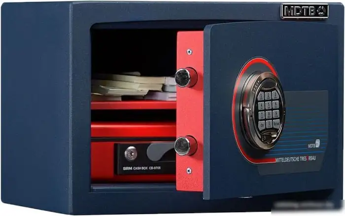 Офисный сейф MDTB EK-28.E предназначен для хранения важных документов и ценностей. Его объем составляет 18 литров, что позволяет удобно разместить необходимые вещи. Сейф выполнен из взломостойкой стали с классом стойкости 1 по ГОСТ Р 50862, обеспечивая высокую защиту. Электронный замок дает надежную и быструю защиту от несанкционированного доступа. Устройство крепится к стене или полу, что повышает безопасность. Внутри есть одна полка для организации содержимого. Цвет сейфа – синий (RAL 5001), он отлично впишется в офисный интерьер. Размеры позволяют легко разместить сейф в нужном месте: ширина 400 мм, высота 280 мм, глубина 310 мм. Вес 54 кг обеспечивает его устойчивость и прочность. Такой сейф помогает сохранить важные документы и ценности в безопасном месте.