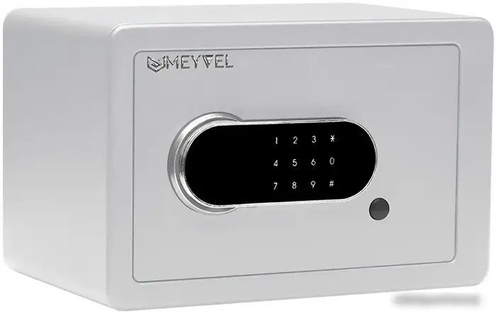 Мебельный сейф Meyvel SF5-310-200 выполнен из прочной стали и имеет белый цвет. Он обеспечивает безопасность благодаря ключевому электронному замку, который быстро открывается в случае необходимости. Внутри находится внутреннее освещение, позволяющее легко найти нужные вещи, а резервное питание защищает содержимое в случае отключения электроэнергии. Сейф устанавливается в стену, что делает его более скрытым и надежным. Его размеры позволяют хранить важные мелкие предметы и документы, а вес — 6,4 кг — обеспечивает прочность и удобство установки. Толщина двери составляет 3 мм, что обеспечивает надежную защиту. Сейф не имеет встроенных полок или трейзера, но легко крепится внутри стен. Возможность интеграции в «умный дом» отсутствует, что делает его простым и надежным средством хранения. Устройство просто в использовании и подходит для домашнего хранения ценных предметов.