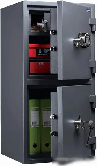 - Взломостойкая и огнестойкая конструкция — защищает ценные бумаги и документы.