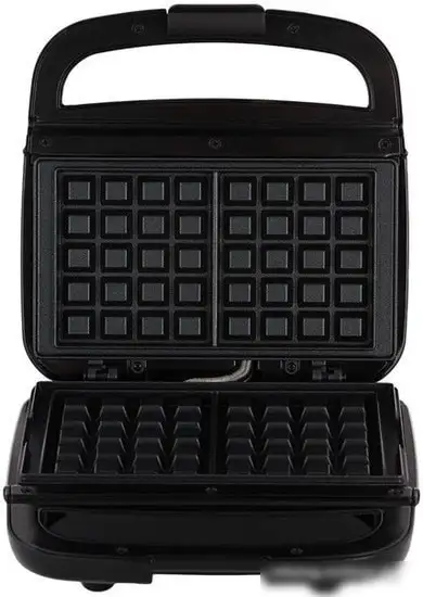 Вафельница Tefal WD170D38 выполнена из нержавеющей стали и имеет черный корпус. Её мощность составляет 700 Вт, благодаря чему она быстро приготовит две квадратные венские вафли. Устройство оснащено тефлоновым антипригарным покрытием, что облегчает очищение и предотвращает прилипание теста. Есть два световых индикатора: один показывает питание, другой — готовность вафель. Вафельница не имеет регулировки температуры, что делает её простым в использовании. Для удобства предусмотрено отделение для хранения шнура.