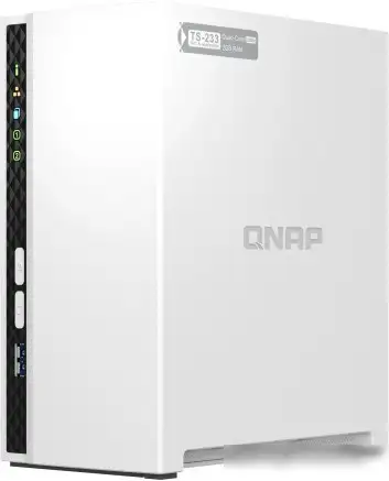 Сетевой накопитель QNAP TS-233 предназначен для домашнего использования как медиа-сервер, резервная копия и файл-сервер. Он оснащён двумя слотами для 3.5" или 2.5" дисков, что позволяет удобно расширять память. Устройство использует процессор ARM Cortex A55 с тактовой частотой 2 ГГц и 2 ГБ оперативной DDR4-памяти, обеспечивая быструю работу. Встроенное аппаратное шифрование AES 256-bit защищает ваши данные. Новая модель поддерживает RAID 0, 1, 5, 6, 10, 50 и 60 для надежного хранения информации. Она умеет подключать внешние диски и поддерживает горячую замену для удобства обслуживания. В функцию входит работа с сетевыми протоколами, организация VPN и управление виртуальными машинами. Также накопитель выступает в роли медиа-сервера, веб и почтового сервера, а благодаря поддержке облачных сервисов, вы легко сохраняете и синхронизируете файлы. Небольшой вес и компактные размеры делают его удобным для размещения в любой домашней или офисной среде.