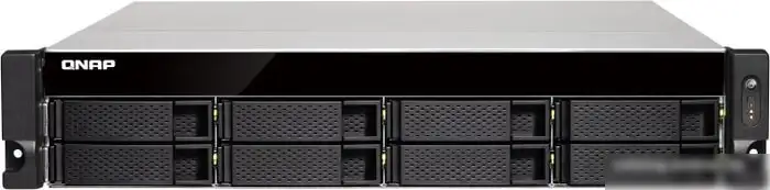 8 x 3.5"/2.5", RAID 1/5/5 + spare/6/6 + spare/10 + spare/JBOD, hot swap, охлаждение активное, LAN 2x1 Гбит/с + 2x10 Гбит/с, 4xUSB 3.0