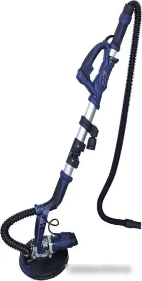 Эта шлифмашина предназначена для обработки стен и потолков. У неё мощность 750 Вт и возможность регулировать скорость вращения от 1000 до 1600 об/мин, что помогает выбрать подходящий режим для работы. Диаметр диска составляет 225 мм, он крепится на липучке, что облегчает смену шлифовальной бумаги. Машина легко подключается к пылесосу, благодаря чему в помещении всегда будет чисто. Вес устройства – 3,9 килограмма, оно удобно для длительной работы. В комплект входит шлифовальный диск, шланг для пылесоса длиной 4 метра и 6 шлифовальных бумажек. Эта модель проста в использовании и не нуждается в стационарном креплении.