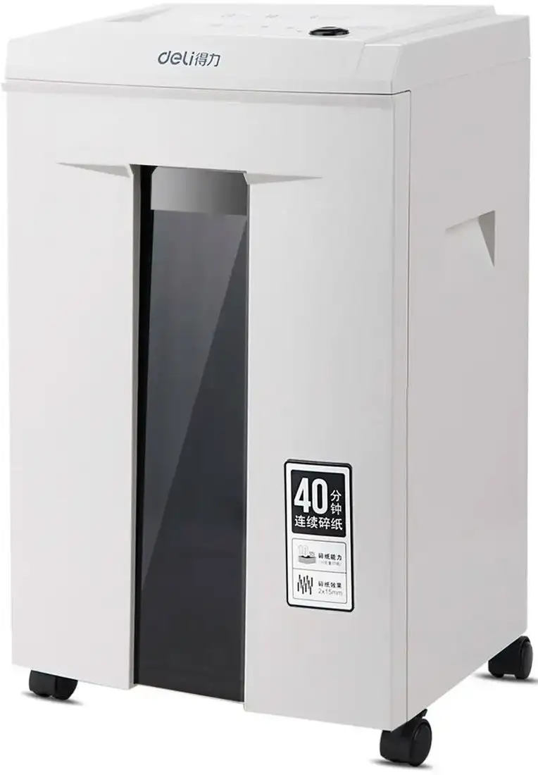 Шредер Deli 9912 — это офисный shredder с уровнем секретности 5, который измельчает бумагу на части размером 2х12 мм. Он имеет емкость корзины 20 литров и работает кратковременными сессиями до 40 минут без перерыва. Управление устройством осуществляется с помощью электронных кнопок и светодиодной индикации, что делает его использование простым и удобным. Шредер безопасно уничтожает пластиковые карты и CD/DVD, а также скрепки, защищая ваши документы и файлы. Он не предназначен для уничтожения жестких дисков или жестких пластиковых карт большого размера. Устройство обладает реверсом для устранения застреваний и отвечает стандартам тишины, его уровень шума — 60 дБ. Размеры составляют 255×350×550 мм, а вес — 8,5 кг, что удобно для перемещения и использования в офисе.