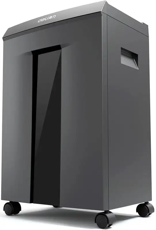 Шредер Deli 9959 предназначен для офисного использования с уровнем секретности 6, что позволяет безопасно уничтожать документы. Он измельчает бумагу в частицы размером 1x9 мм и справляется с до 70 г/м² за один проход, работая непрерывно до 40 минут. С вместительной корзиной объемом 30 литров легко справится с большим количеством бумаги. Операции управляются электронным управлением с светодиодной индикацией, которая показывает нагрузку и состояние устройства. Режим вертикальной подачи бумаги упрощает использование, а автоподача ускоряет работу. Устройство поддерживает реверс для предотвращения застревания и уничтожает скрепки, что повышает эффективность. Благодаря уровню шума 60 дБ, оно не мешает в офисе. Модель имеет компактные размеры и весит 17,6 кг, легко перемещается и подходит для регулярного использования.