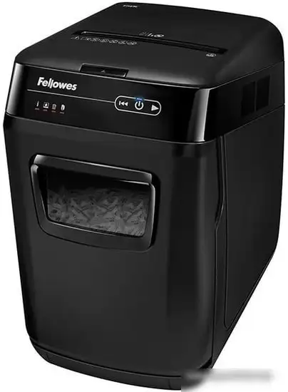 Шредер Fellowes AutoMax 150C предназначен для офисного использования и обеспечивает уровень секретности 4, который уничтожает документы на мелкие частицы 4 x 38 мм. Он имеет вместительную корзину объемом 32 литра и способен быстро перерабатывать до 3 метров в минуту. Этот шредер работает кратковременно и автоматически перезагружается после 12 минут работы с перерывом в 25 минут. Он легко управляется с помощью сенсорной панели и светодиодных индикаторов, показывающих нагрузку и полное заполнение корзины. Благодаря автоматическому реверсу и функции автозапуска устройство предотвращает застревания бумаги и быстро возобновляет работу. В шредер можно вставлять пластиковые карты и CD/DVD, что делает его универсальным. Он защищён от перегрева и включает автостарт и стоп для удобства использования. Размеры устройства — 515 х 345 х 540 мм, весит он 14,4 кг, что обеспечивает стабильность при работе.