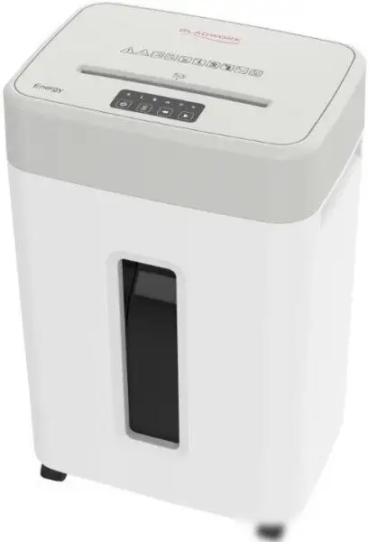 Шредер Gladwork Energy P-18MD отлично подходит для офиса с умеренной нагрузкой. Он уничтожает бумагу с частицами размером 2x12 мм, обеспечивая уровень секретности 4. Корзина вмещает до 35 литров, что позволяет реже её опустошать. Устройство работает короткими сессиями до 60 минут и уничтожает до 70 г/м² за проход. Он сопровождает процесс светодиодной индикацией нагрузки и полной корзины, что удобно для контроля. Благодаря электронной системе управления шредер легко включать и останавливать, а функция реверса помогает избавиться застрявшей бумаге. Подача бумаги осуществляется вертикально, а механизм перекрёстной резки обеспечивает надёжность уничтожения. Модель способна уничтожать пластиковые карты, CD/DVD и скрепки, что расширяет её применение. Шредер обладает тихой работой — уровень шума не превышает 55 дБ, и занимает мало места с размерами 290x400x627 мм при весе 13 кг.